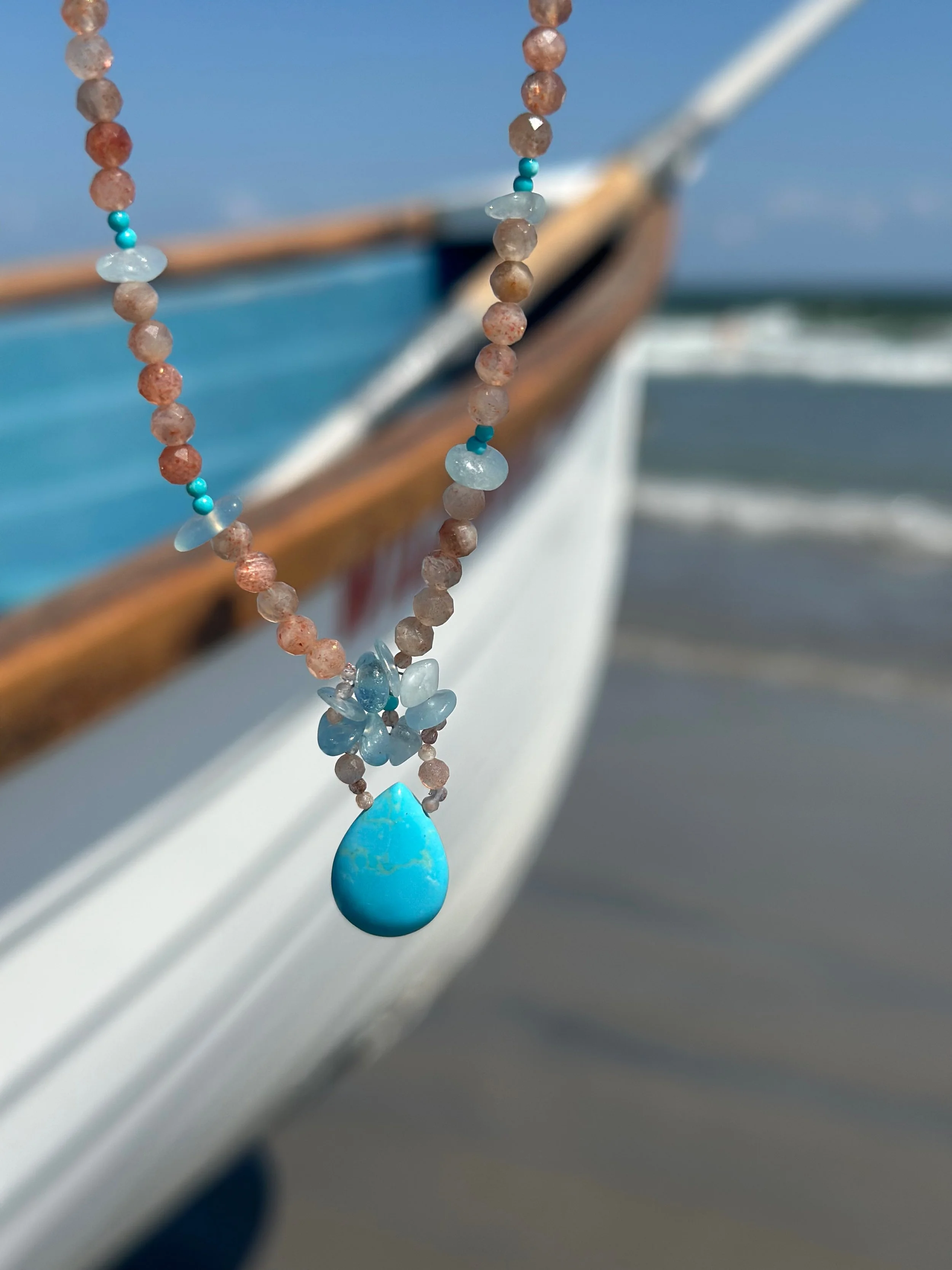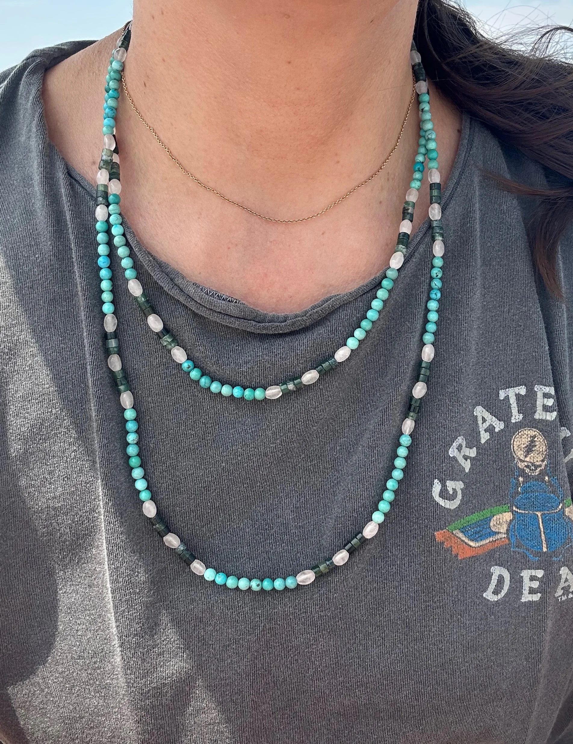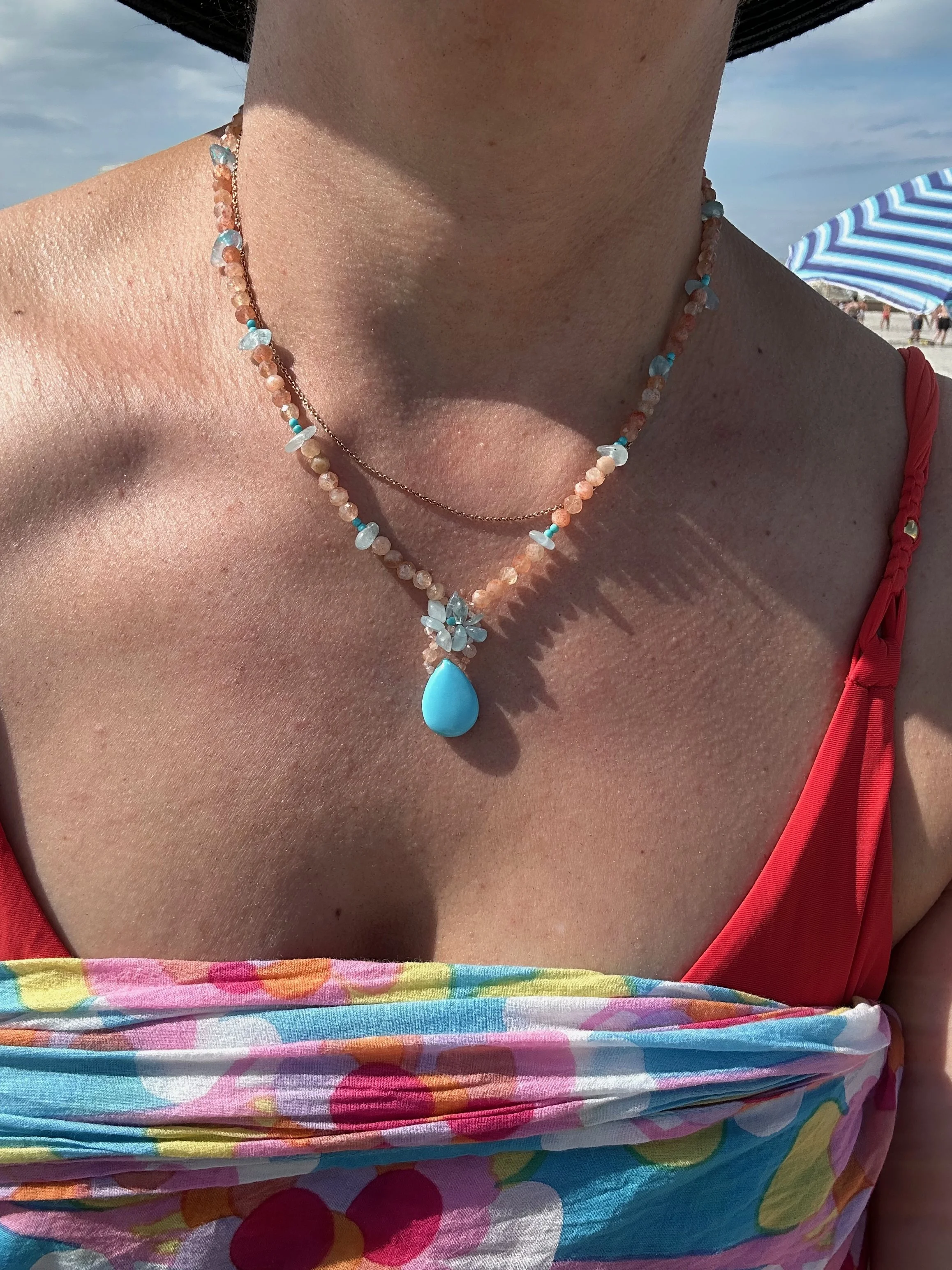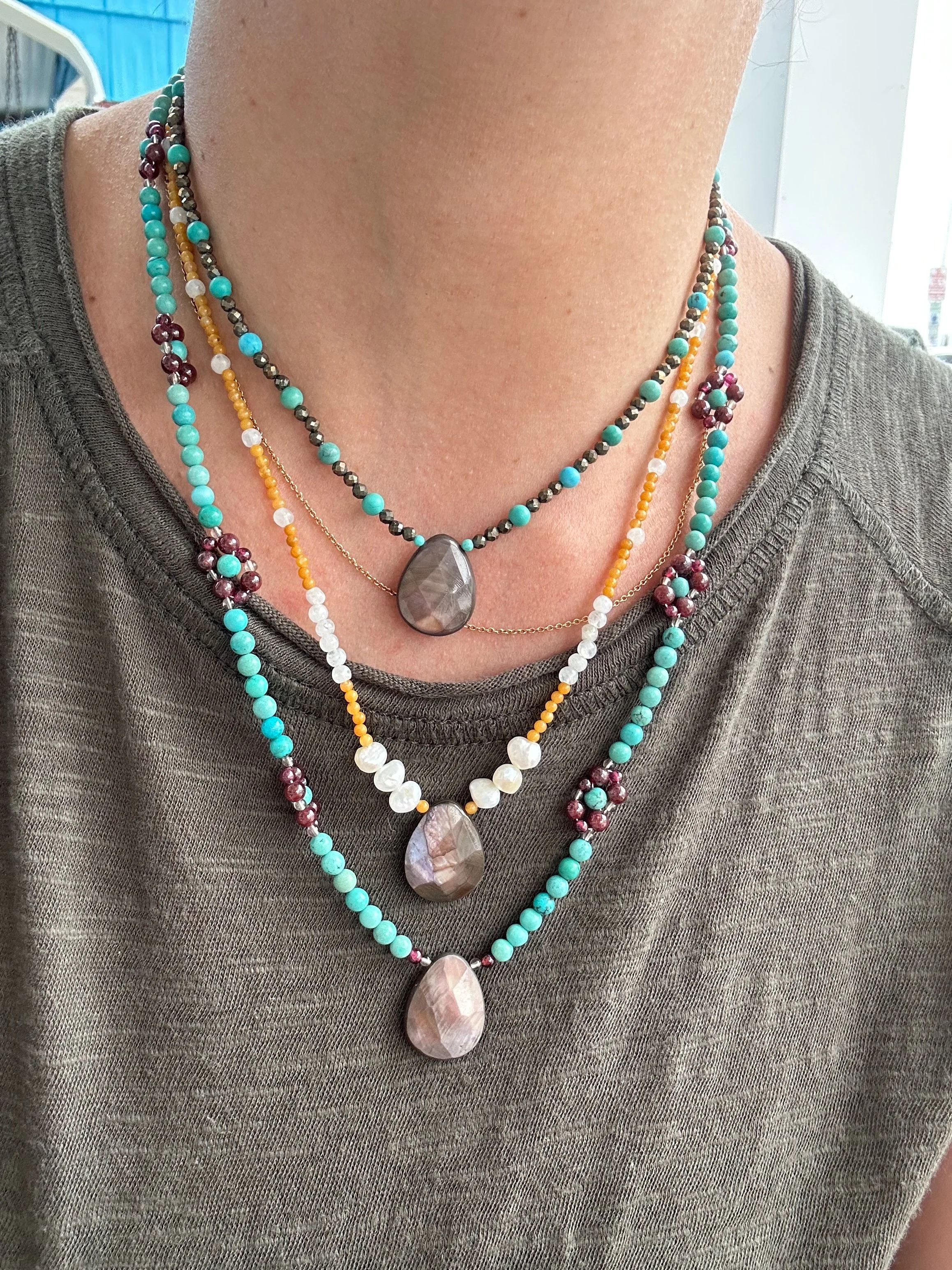 Rose Quartz Wildflowers with Garnet and Amazonite Necklace Rose Quartz Wildflowers with Garnet and Amazonite Necklace
