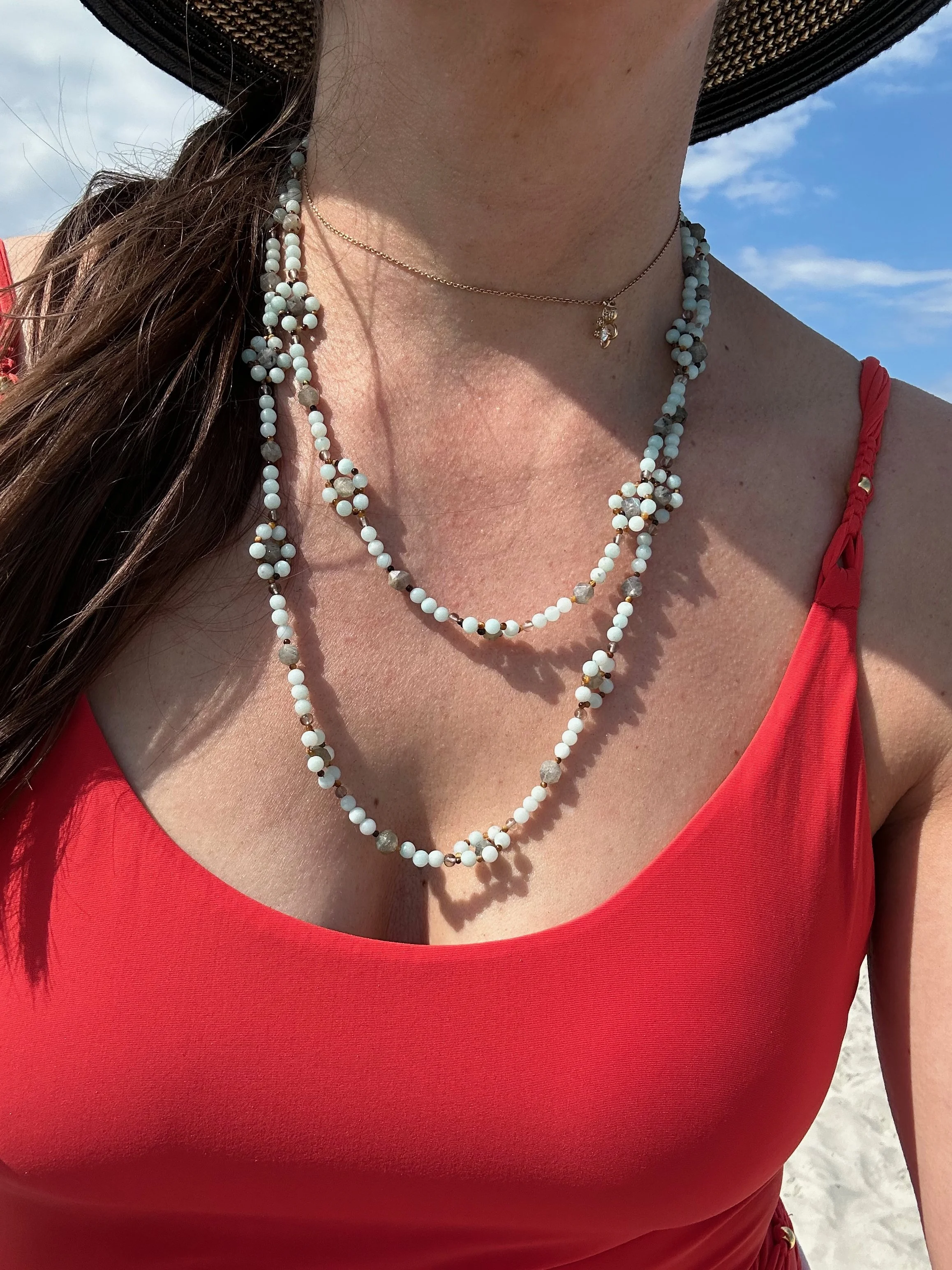 Faceted Mother of Pearl with Jade and Moonstone Necklace Faceted Mother of Pearl with Jade and Moonstone Necklace
